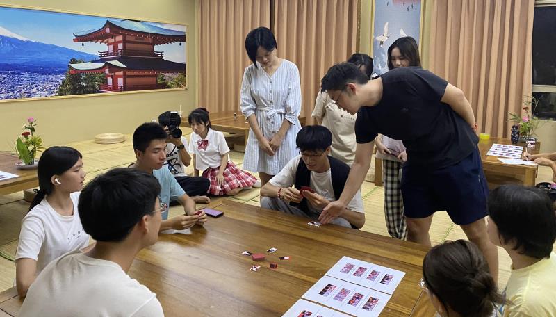 本项活动由外籍教师谷田老师向同学们介绍花牌打法,并和同学们共同玩耍。