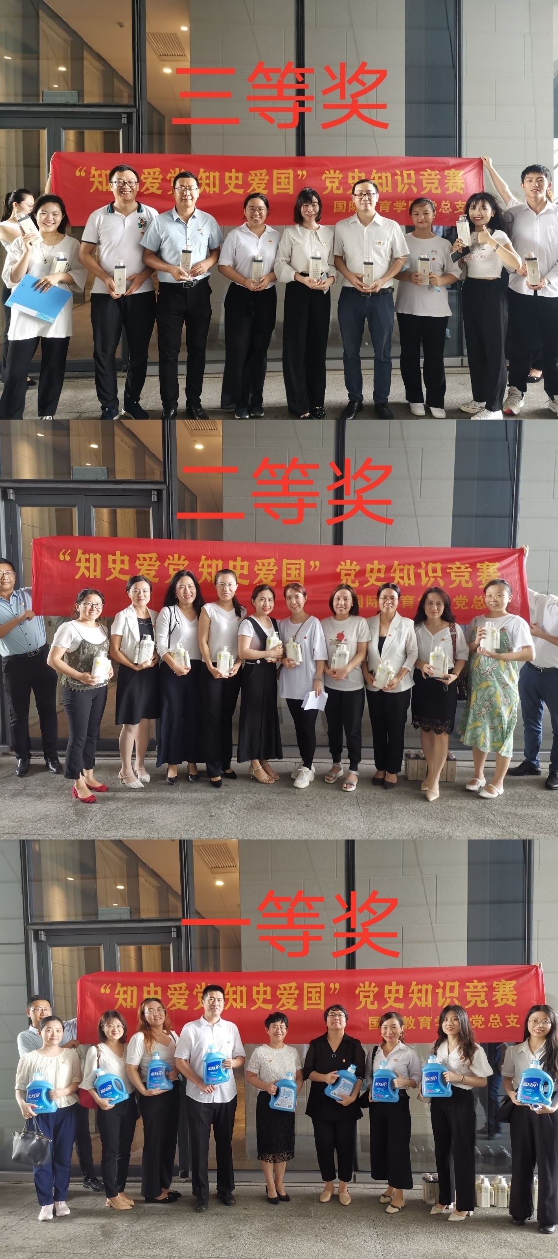 随后,在党史知识竞赛环节中,国际教育公司全体党员共分为三组,每组举手抢答,答对得一分,答错扣一分,最后由记分员统计每组得分,颁发奖品。“没想到党史知识竞赛是这么紧张刺激的!”“太自豪了,我帮我们组拿下了两题!”积极参与其中的老师激动地说道。国际教育公司党总支将用好红色资源,紧扣实际,采取专题学习、教育培训、座谈交流、实地见学等形式,进一步推动党史学习教育深入基层、深入人心,使得全体党员群众真正在红色精神学习中立心铸魂,做到心中有信仰、脚下有力量。