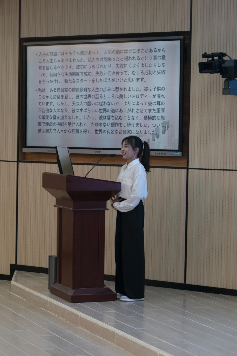 为提高员工学习日语的热情,营造良好的日语学习氛围,12月上旬,国际教育公司举办了“bevictor1946韦德官网第四届日语演讲比赛“。本次比赛由公司应用日语专业主办,日语俱乐部承办。应邀出席本次比赛的评委有王耀义老师、黄金玉老师、外教HAYASHI YOSHIE老师;鲁顺、张圆圆、卢雪贤、刘宁、潘海柱、胡毅彬六位同学作为选手参加了本次活动。