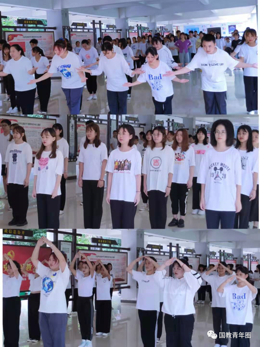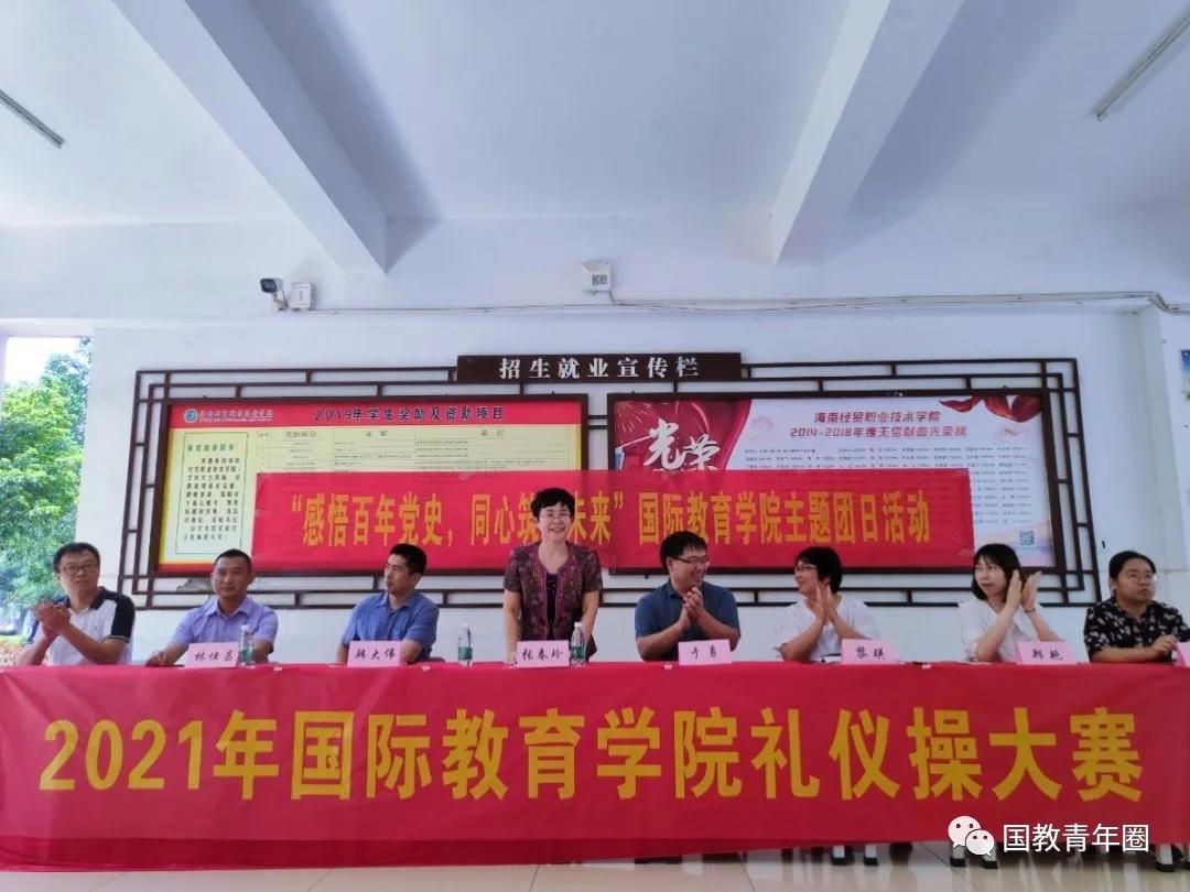 为了传承中华传统美德,强化文明礼仪教育,注重外修内练,国际教育公司于4月16日中午在一栋教学楼举行了礼仪操比赛。国际教育公司党总支书记于勇、经理张春玲、副经理韩大伟、副经理黎瑛、学工办主任郑艳、教务办主任林仕昌、19级辅导员黄银亮、肖意、孔凯出席本次比赛,国际教育公司2020级全体员工参加比赛。
