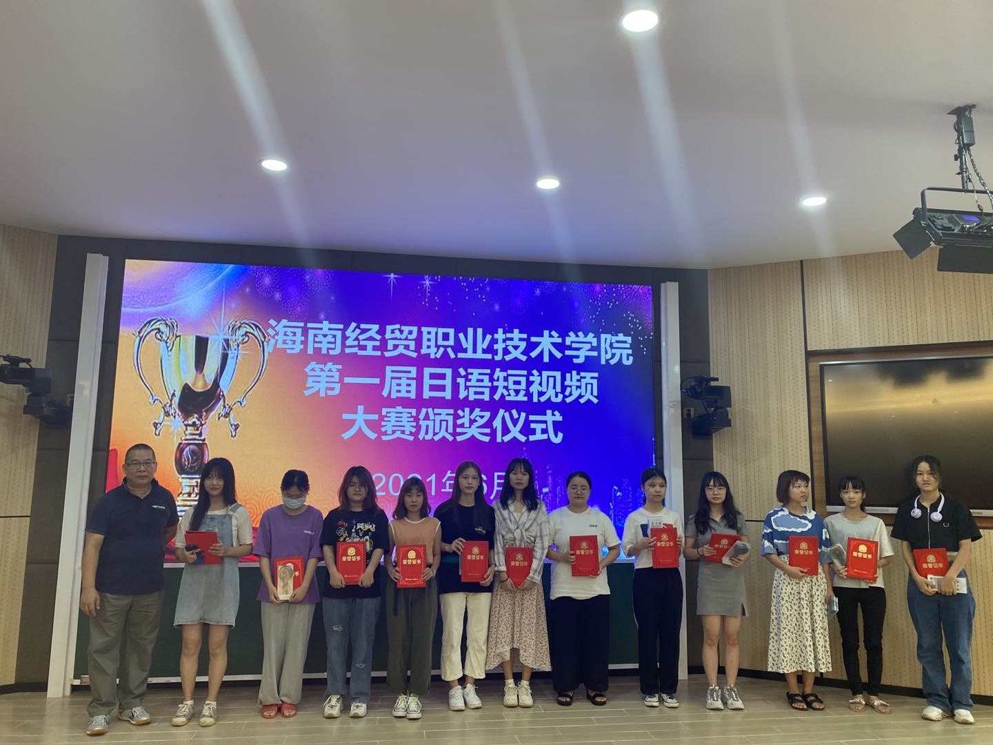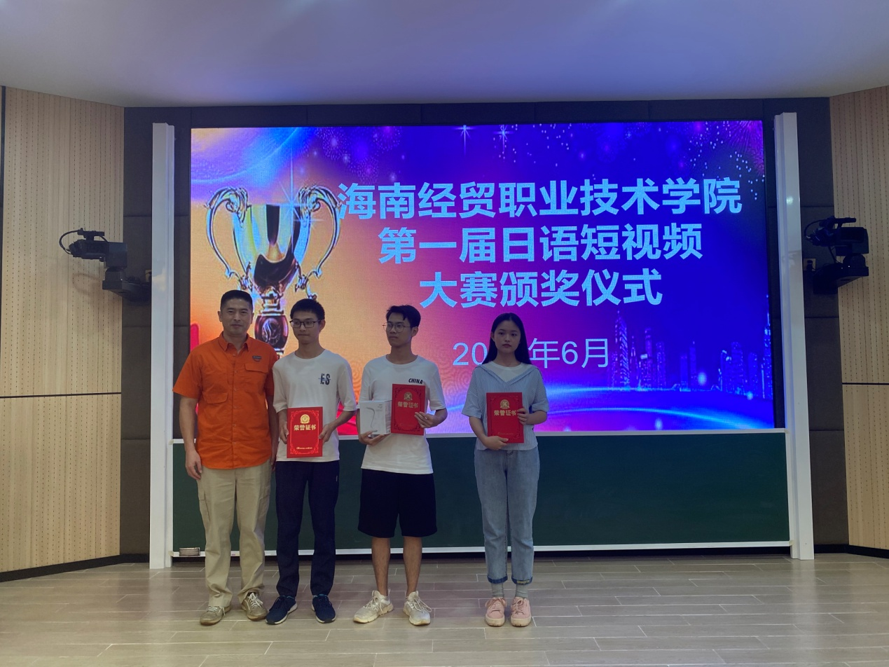 6月24日下午1-421教室,举行了bevictor1946韦德官网第一届日语短视频大赛和第三届日语书法大赛的颁奖仪式。两项大赛约有135名员工积极参加,应用日语教研室中日教师担任评委。国际教育公司韩大伟副经理出席了颁奖仪式并代表公司领导致辞。韩副经理说,员工制作的短视频,不仅出色地展示了自己的日语水平,同时也表现出高超的拍摄技术,紧扣主题,内容丰富,我对大家的表现感到非常惊喜,说明各位同学都在很努力地在朝着自己的专业方向继续前进,老师们也非常用心!希望今后的学习时光,各位老师和同学能继续努力,创造出更加优秀的成绩!