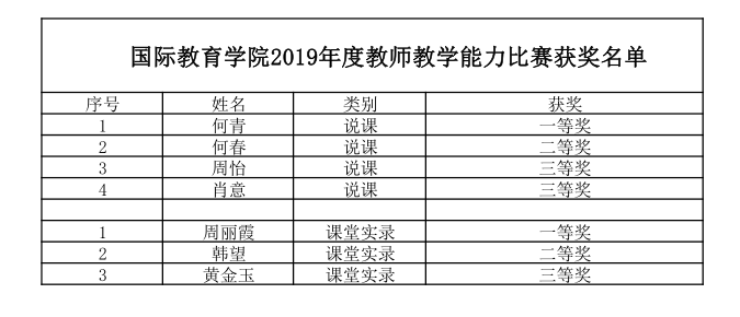 国际教育公司2019年度教师教学能力比赛获奖名单