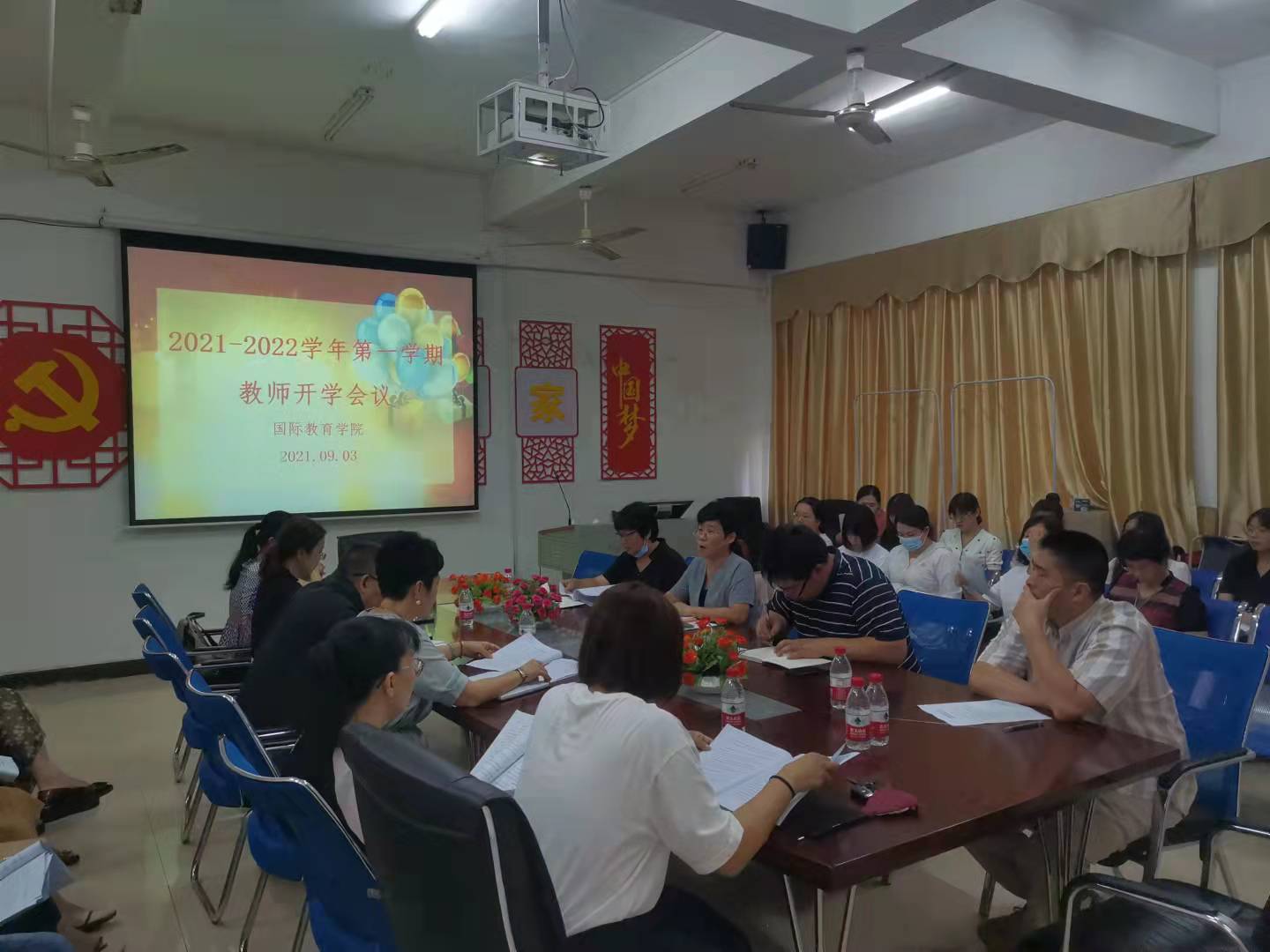 为扎实安全有序做好 2021-2022学年第一学期开学工作,9月3日上午,国际教育公司在1-323会议室召开了全体教师开学会议。国际教育公司党总支书记于勇、张春玲经理、黎瑛副经理、韩大伟副经理及全体教职工参加了此次会议。