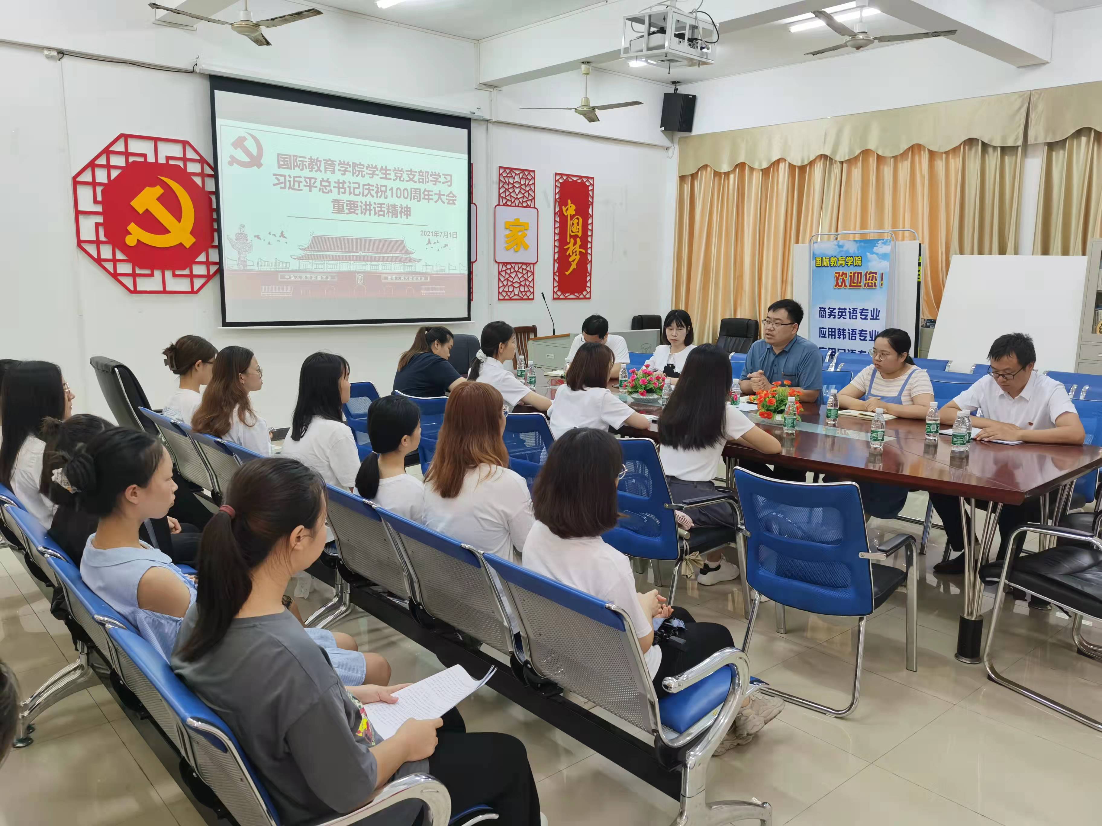2021年7月1日8时,庆祝中国共产党成立100周年大会在北京天安门广场隆重举行。习近平总书记在天安门广场发表了重要讲话,为了深入学习习近平总书记在庆祝中国共产党成立100周年大会上的重要讲话精神,国际教育公司员工党支部在1-323会议室召开了座谈会。
