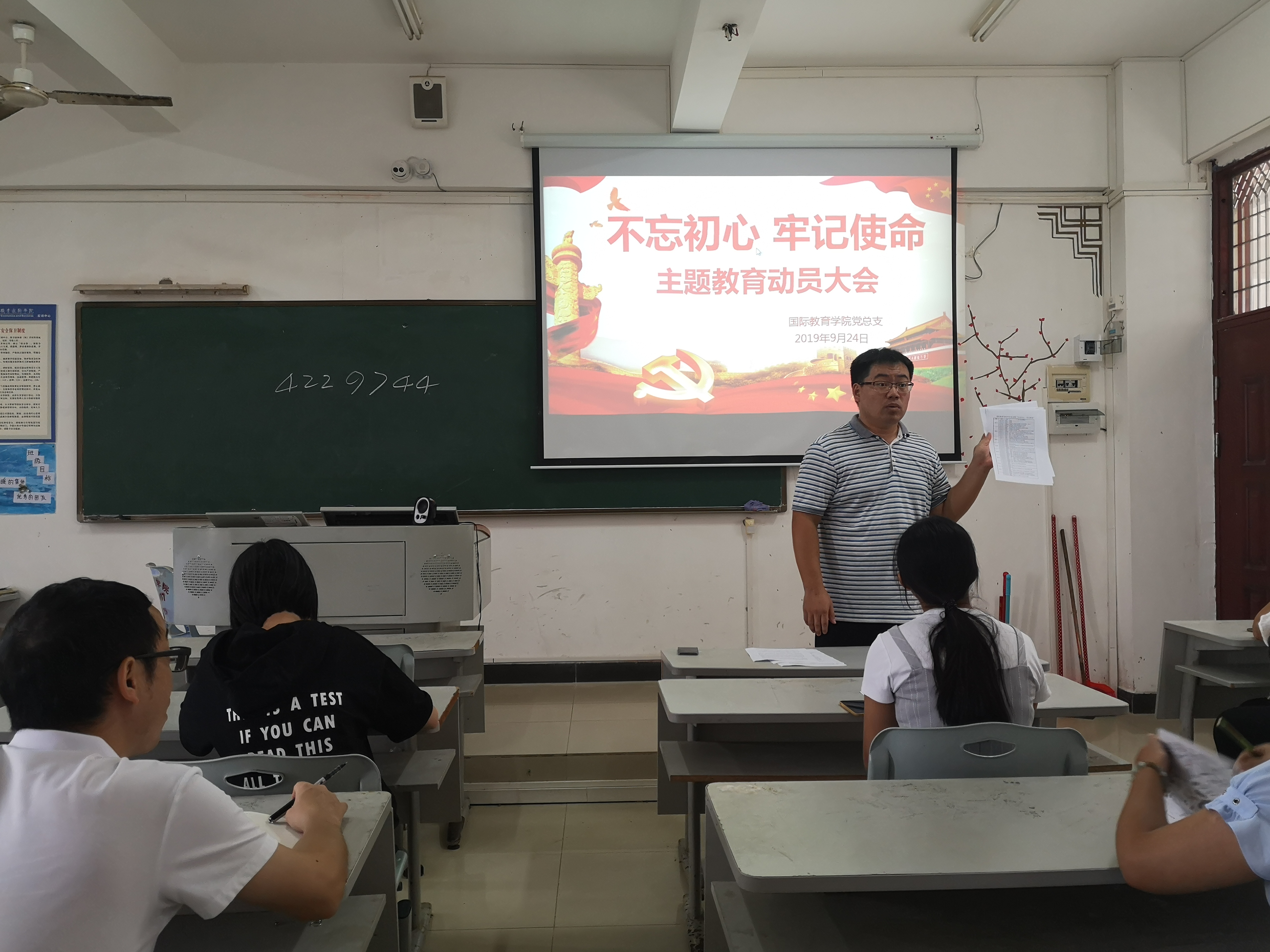就理论学习等事项向各位教师党员进行了详细说明,并安排了学习任务