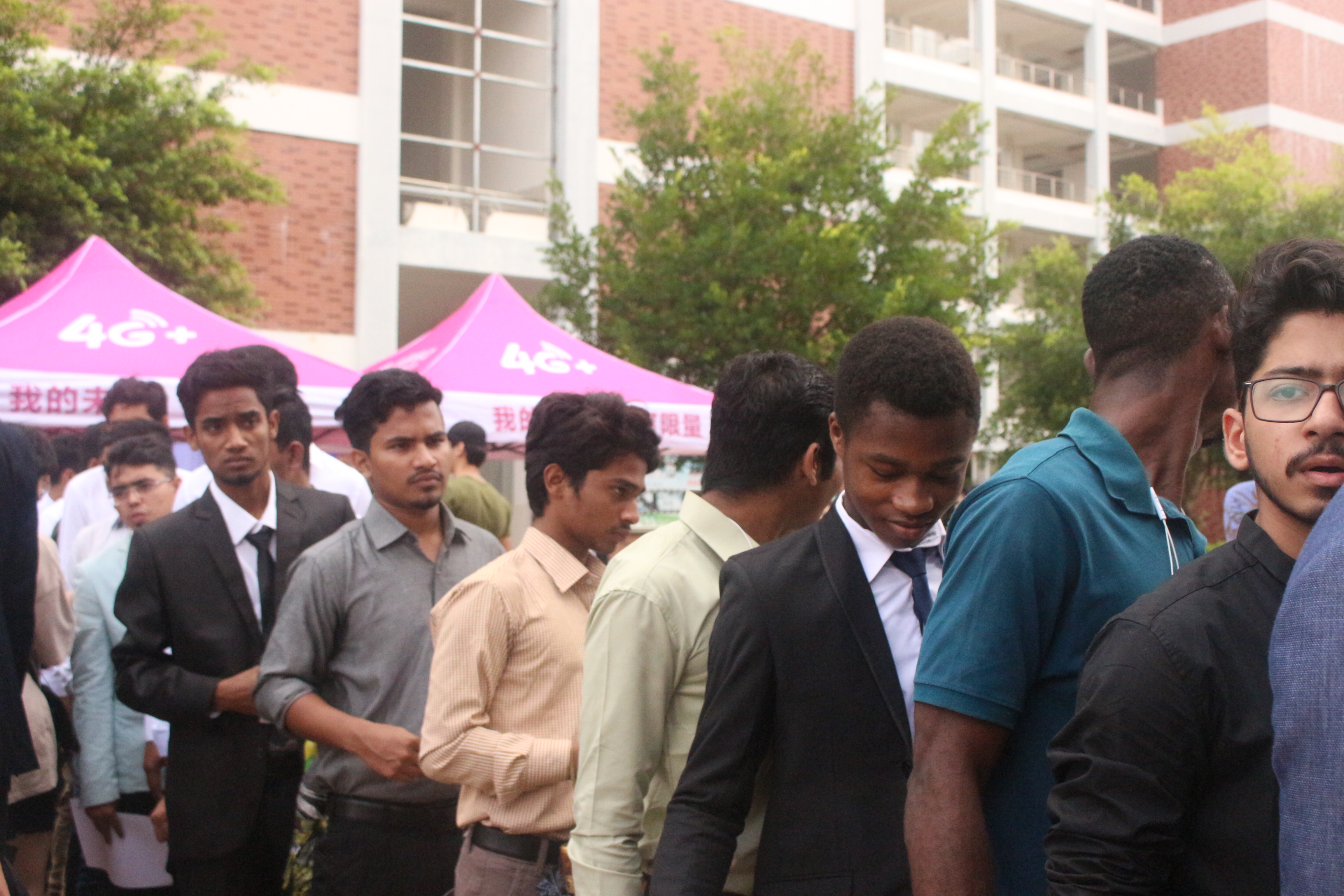 外国职工排队等待面试