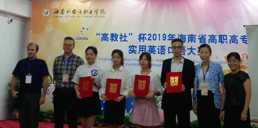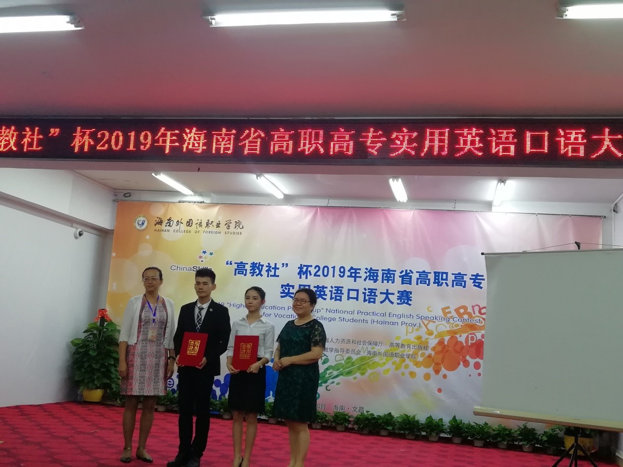 10月25日上午,“高教社杯”2019年海南省高职高专实用英语口语大赛在海南外国语职业公司图书馆多功能报告厅举行,来自全省12所院校的37名选手参加此次比赛。bevictor1946韦德官网符丹敏同学和刘海妮同学分别获得英语专业组的二等奖、三等奖。王兴同学和杨紫彤同学获得了非英语专业组的二等奖。