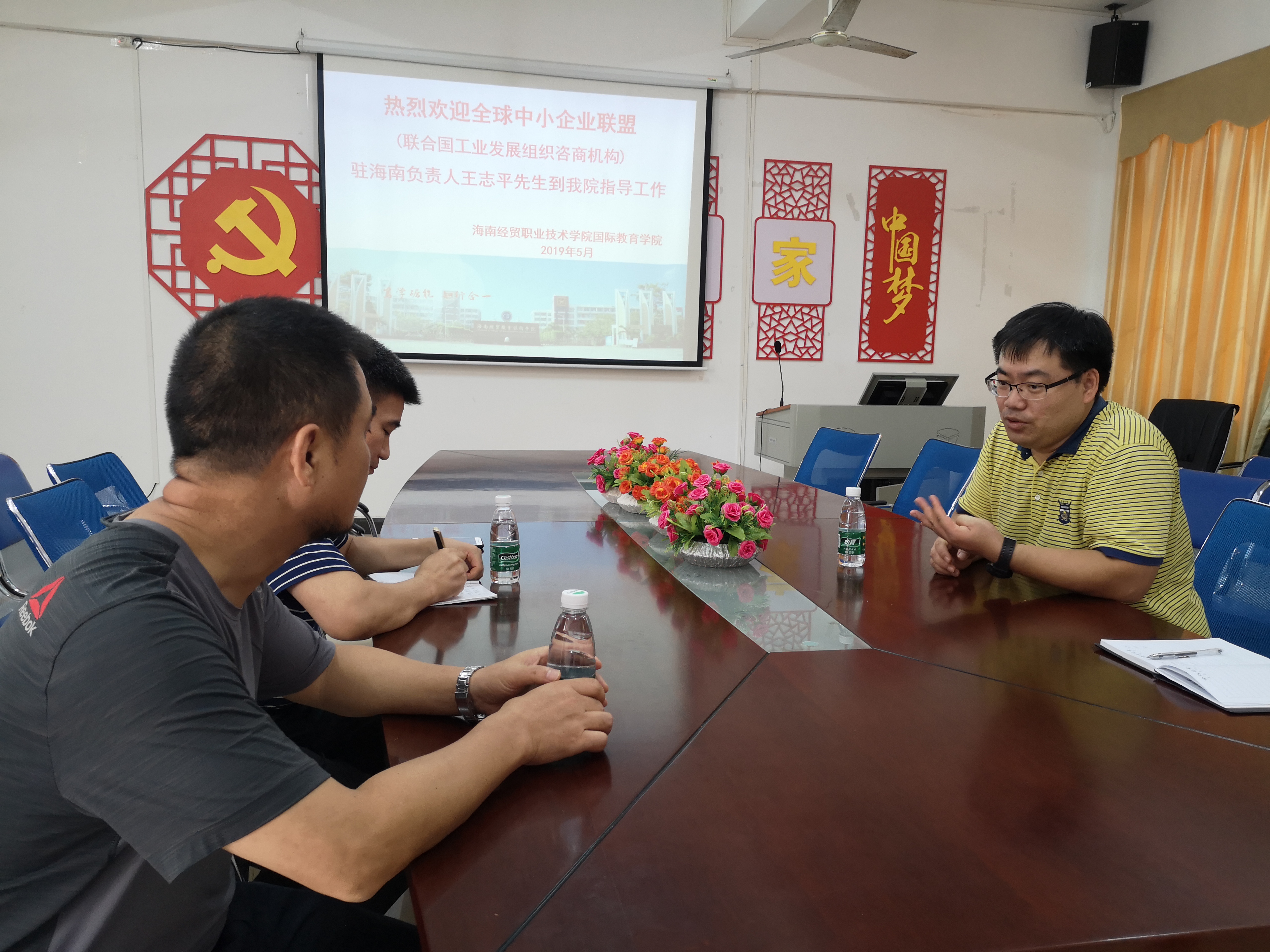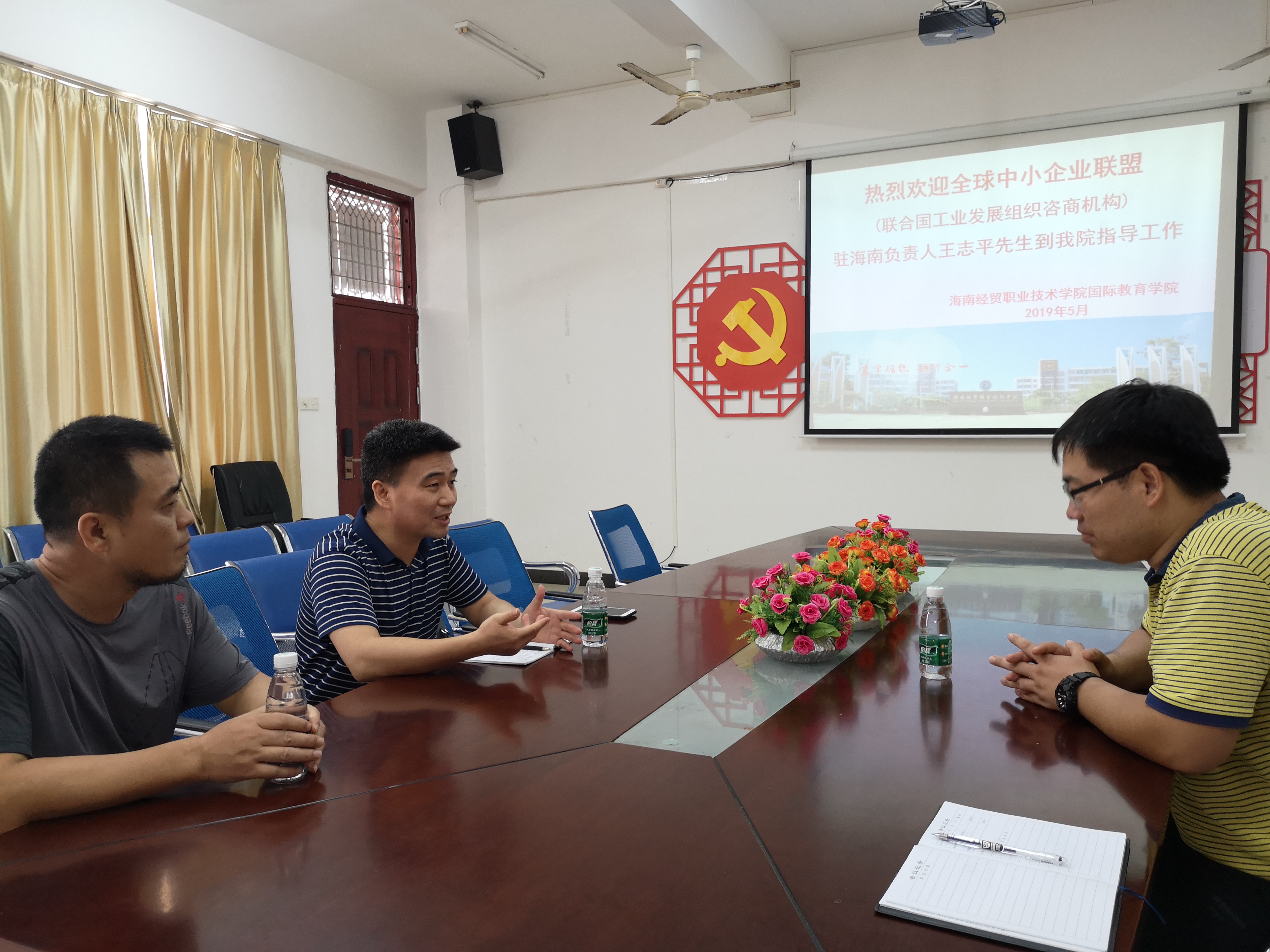 5月15日下午,全球中小企业联盟——联合国工业发展组织咨商机构驻海南负责人王志平先生到公司指导工作,就海南省职业教育国际化及韩国科学技术部GHC项目进行深入交谈与沟通,此后将共同积极主导并发展公司的对外交流合作项目,提升公司国际化视野,为员工、教师搭建更完善、高端的国际化平台。